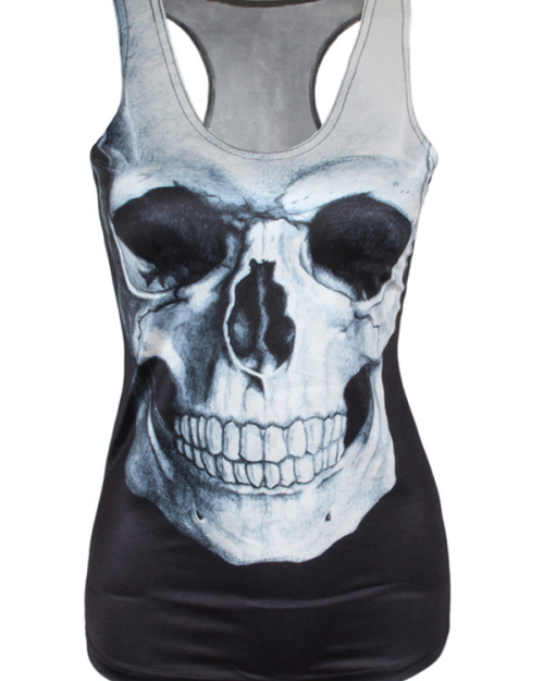 Leisure Round Neck Skull Printing Backless Black Polyester Tank Top