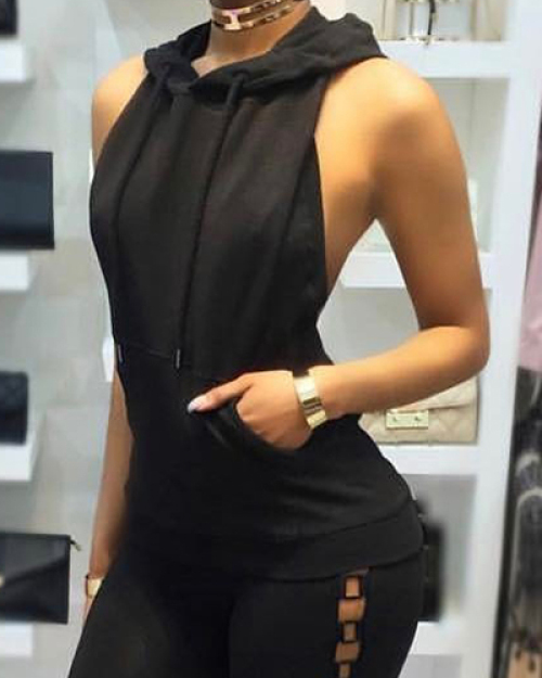 Sexy Backless Black Polyester Shirts