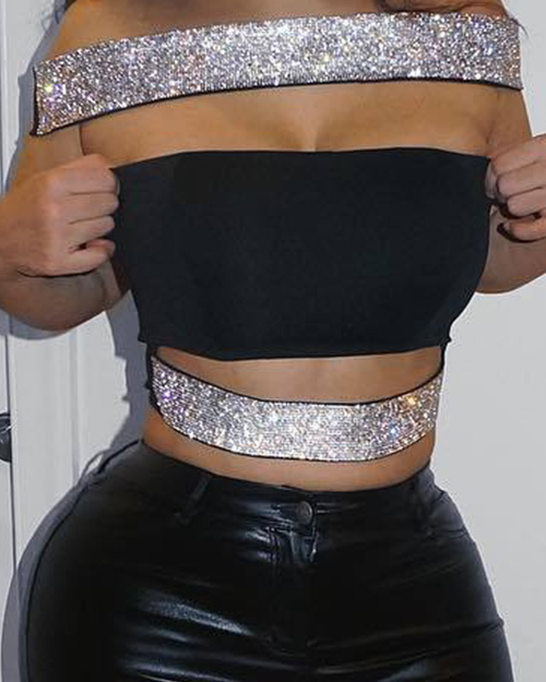 Sexy Bateau Neck Hollow-out Black Twilled Satin Tank Top