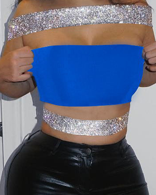Sexy Bateau Neck Hollow-out Blue Twilled Satin Tank Top