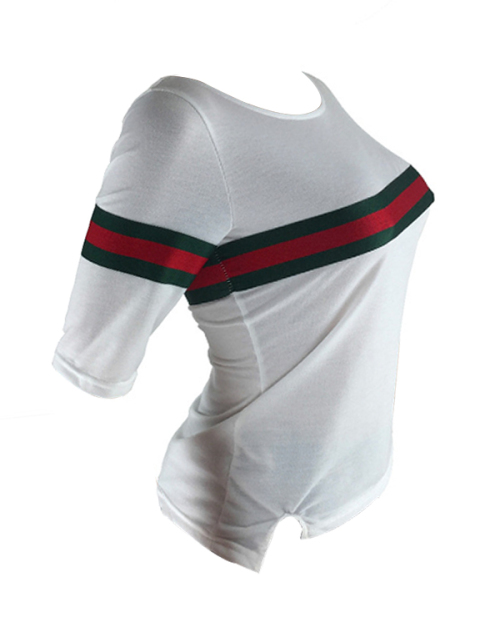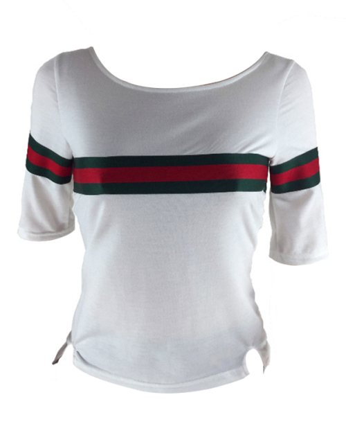 Casual Round Neck Striped Patchwork White Cotton T-shirt