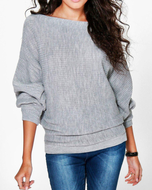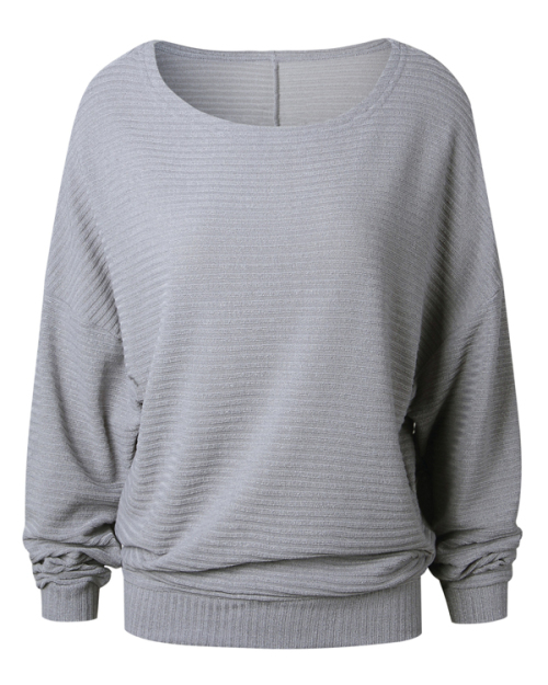 Euramerican Round Neck Long Sleeves Grey Cotton Sweaters