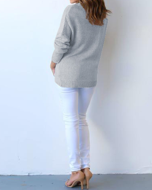 Euramerican V Neck Long Sleeves Asymmetrical Grey Cotton Sweaters