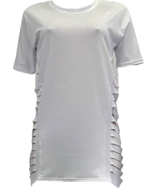 Leisure Round Neck Short Sleeves Hollow-out White Blending T-shirt