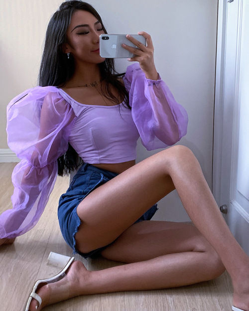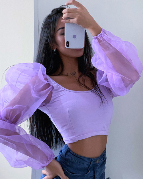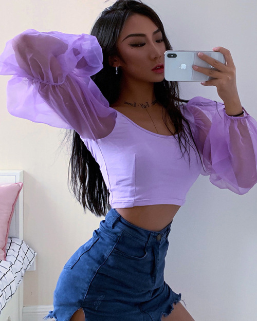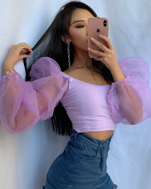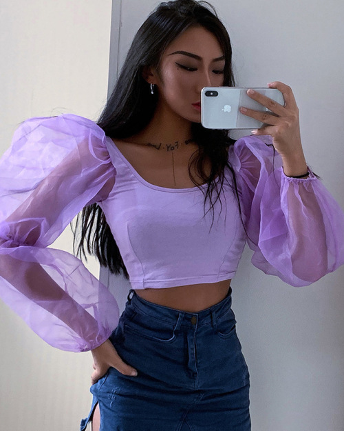 Long-sleeved vest top - selling new U collar crop revealing elastic sleeve top #95111