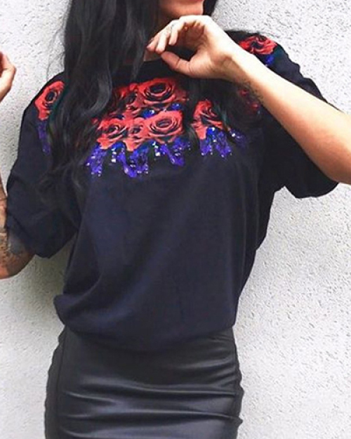 Pullovers Qmilch O Neck Half Sleeve Print T-shirt