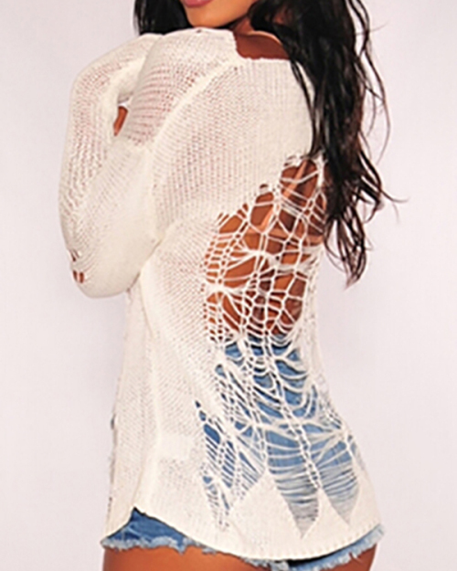 Sexy Hollow-out Long Sleeve Sweater