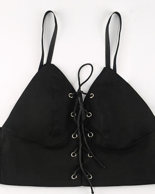 Sexy Spaghetti Strap Sleeveless Hollow-out Black Cotton Tank Top