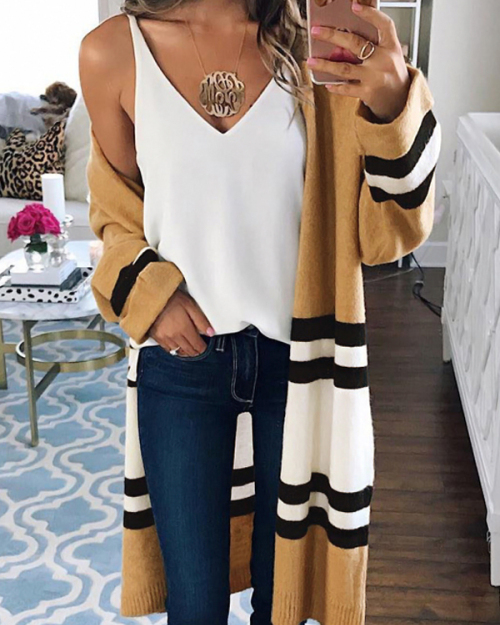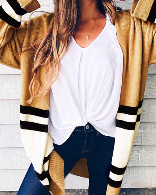 Euramerican Long Sleeves Patchwork Yellow Cotton Cardigans