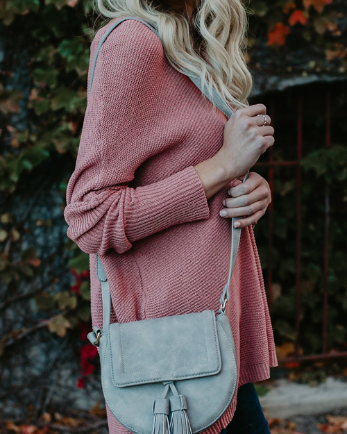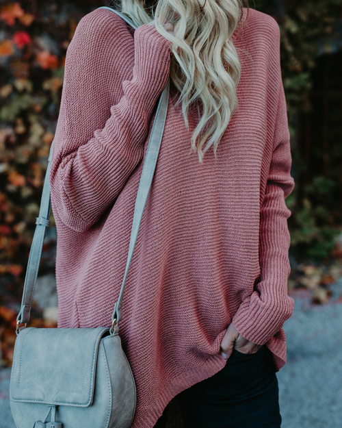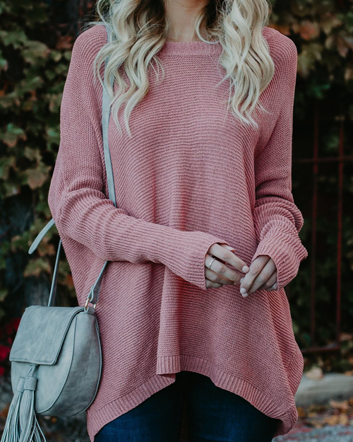 Euramerican Round Neck Asymmetrical Pink Acrylic Sweaters