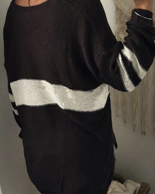 Euramerican V Neck Long Sleeves Patchwork Black Wool Sweaters