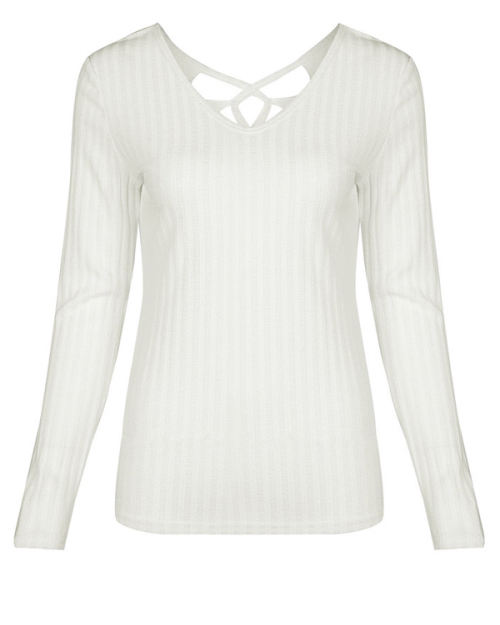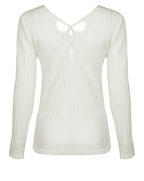 Sexy V Neck Hollow-out White Knitting Pullovers