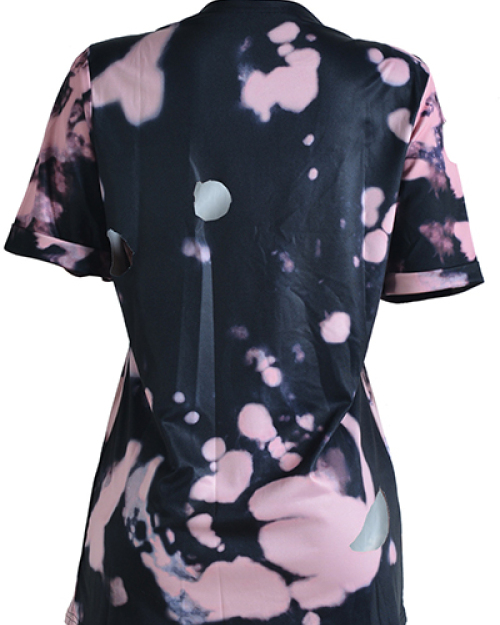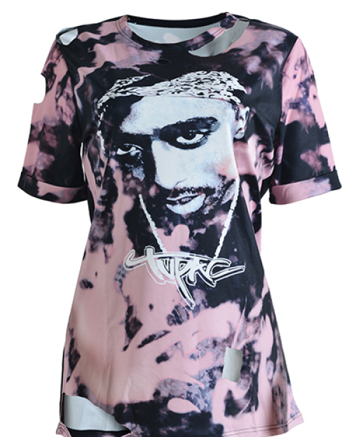 Euramerican Round Neck Short Sleeves Printed Asymmetrical Qmilch T-shirt