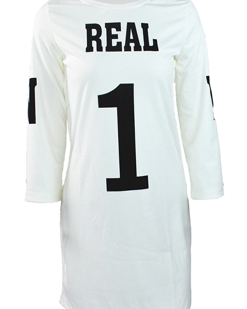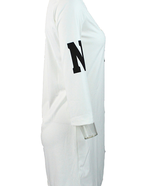 Leisure Round Neck Three Quarter Sleeves Letters Printed White Knitting T-shirt