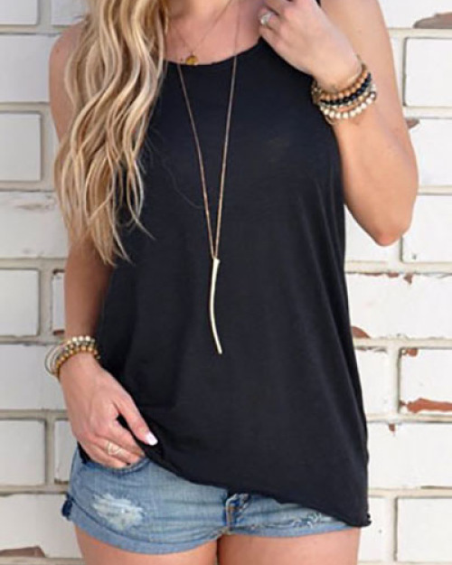Pullovers Polyester O Neck Sleeveless Solid T-shirt