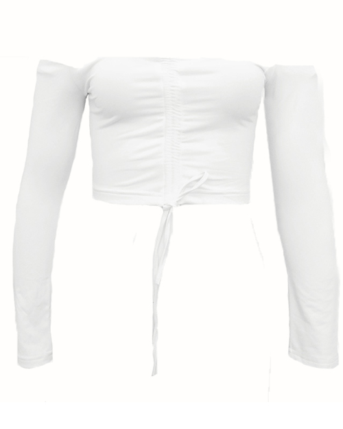 Sexy Dew Shoulder White Polyester T-shirt