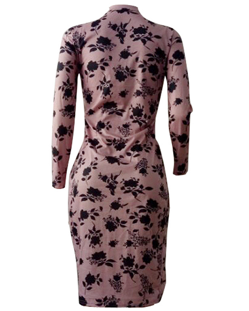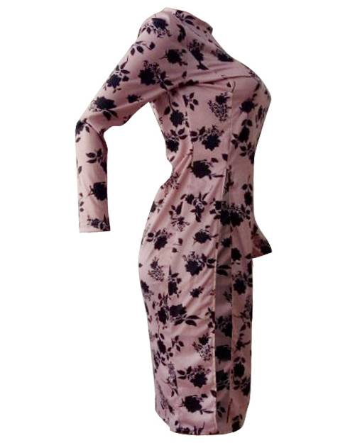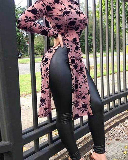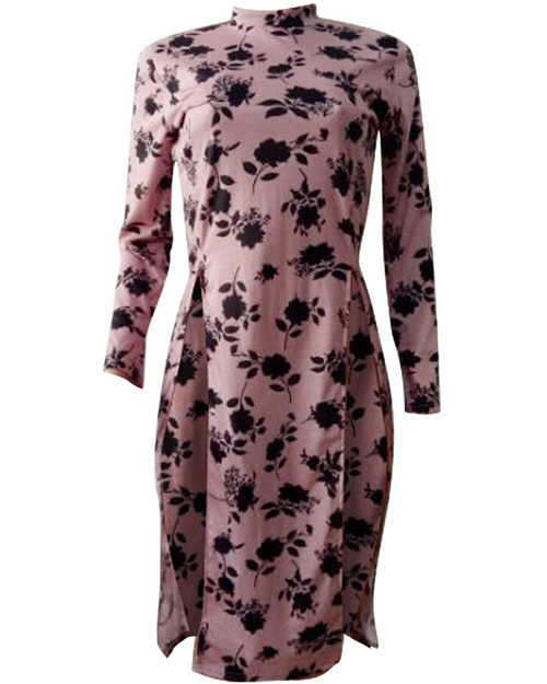 Stylish Round Neck Floral Printed Side Slit Pink Polyester T-shirt