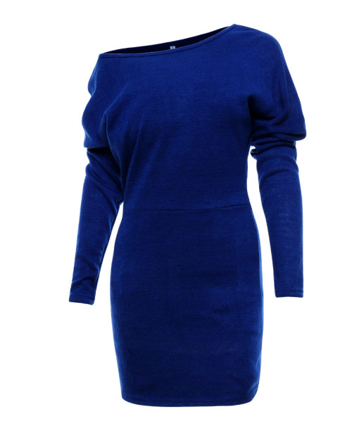 Trendy Dew Shoulder Blue Polyester Sheath Mini Dress