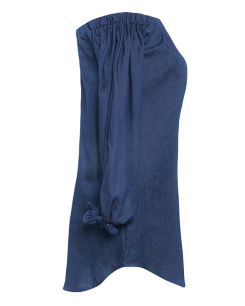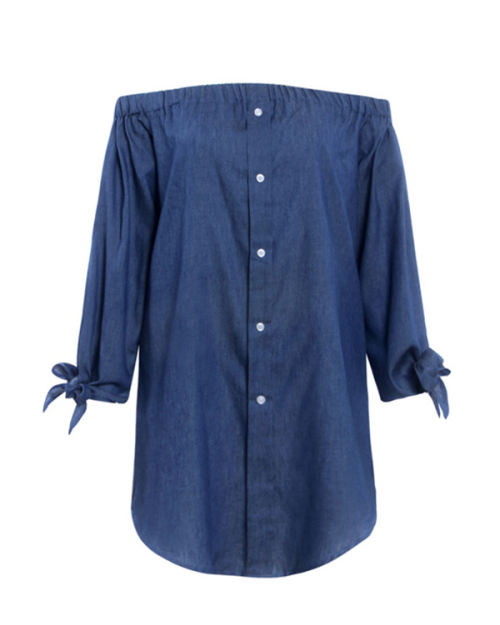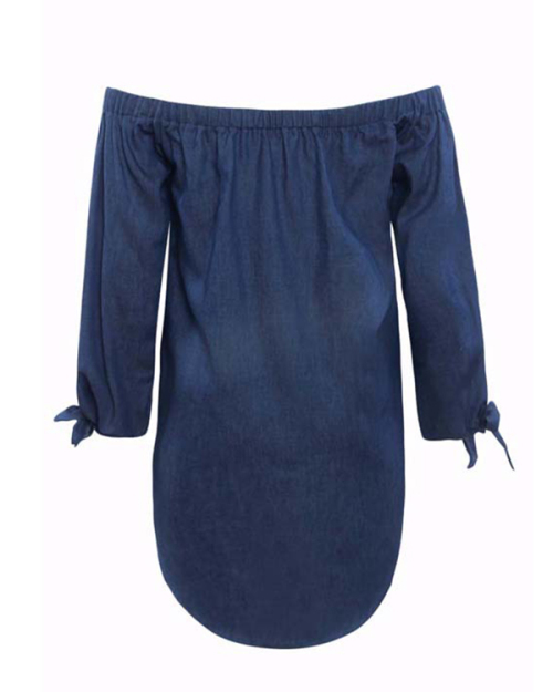 Trendy Dew Shoulder Button Decorative Dark Blue Denim Mini Dress