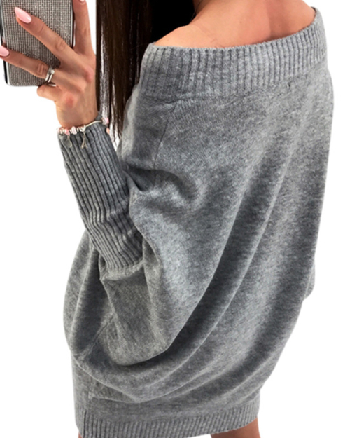 Trendy Dew Shoulder Grey Knitting Sweaters