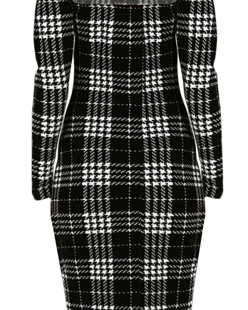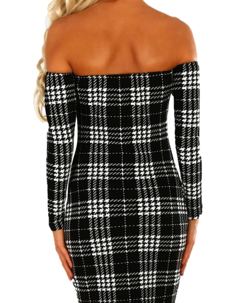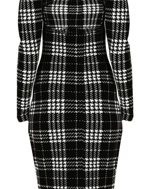 Trendy Dew Shoulder Grid Polyester Sheath Knee Length Dress