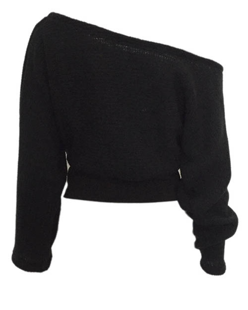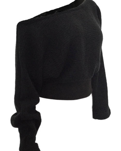 Trendy Dew Shoulder Long Sleeves Black Wool Sweaters