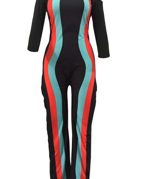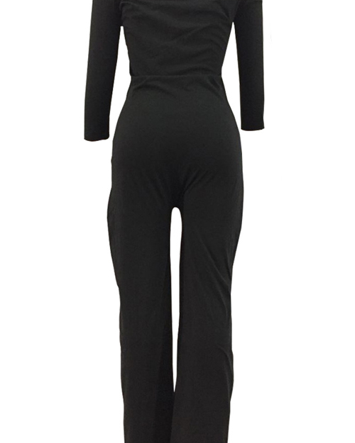 Trendy Dew Shoulder Patchwork Black Cotton One-piece Jumpsuits