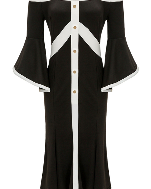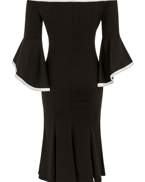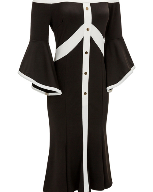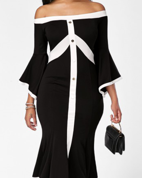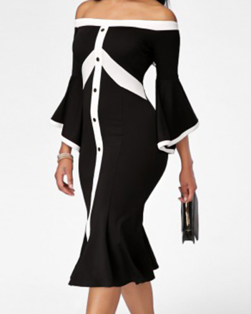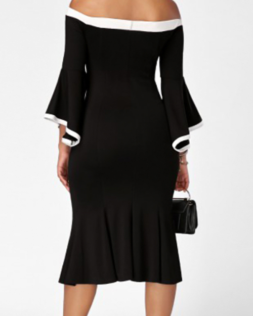 Trendy Dew Shoulder Patchwork Black Knee Length Dress