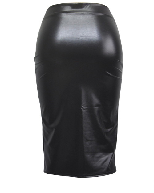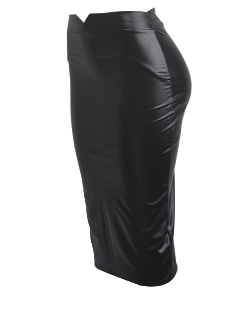 Trendy High Waist Black Leather Sheath Knee Length Skirts