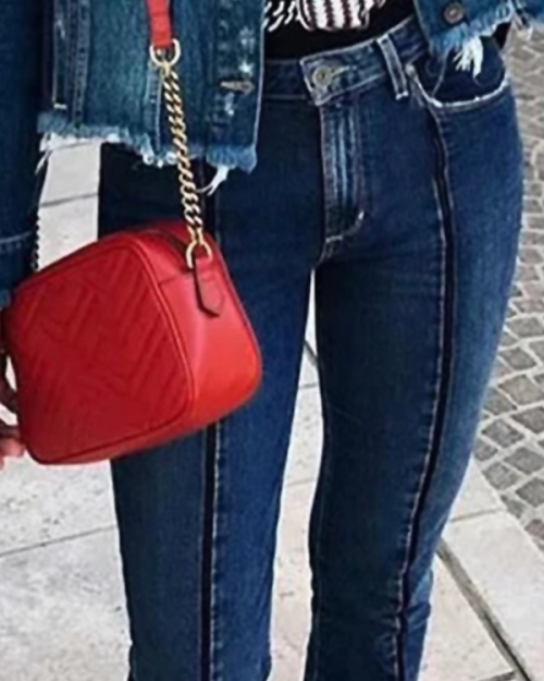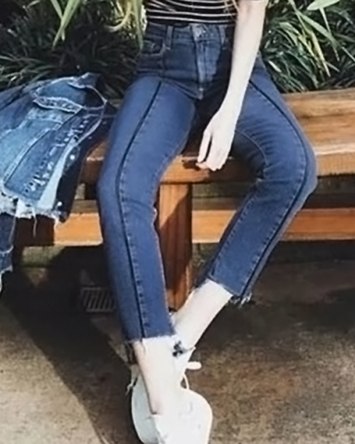 Trendy High Waist Zipper Design Blue Denim Jeans