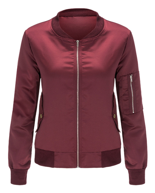 Trendy Long Sleeves Zipper Design Wine Red Rayon Coat