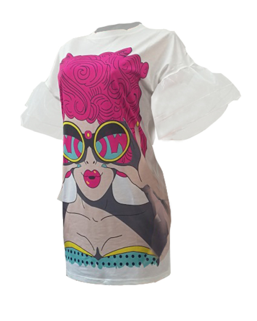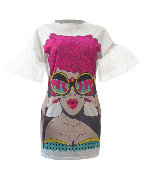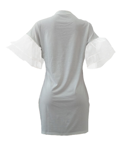 Trendy Round Neck Gauze Patchwork Printed White Polyester Mini Dress