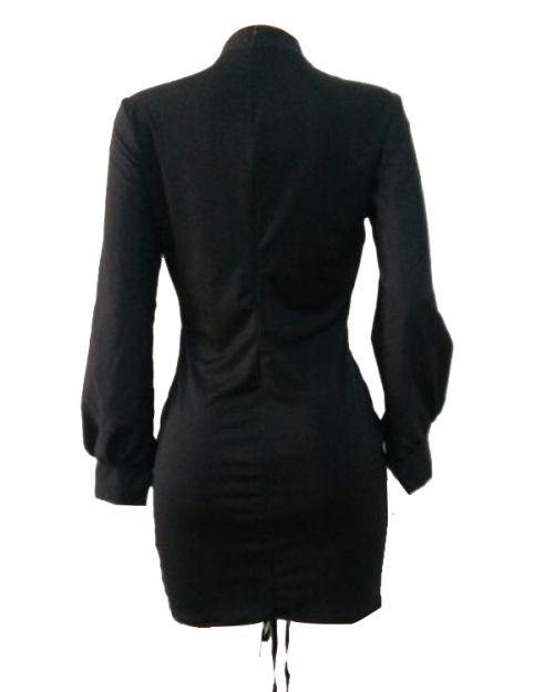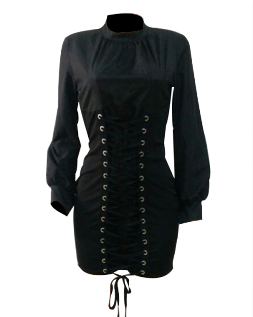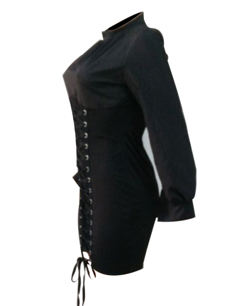 Trendy Round Neck Lace-up Black Polyester Sheath Mini Dress