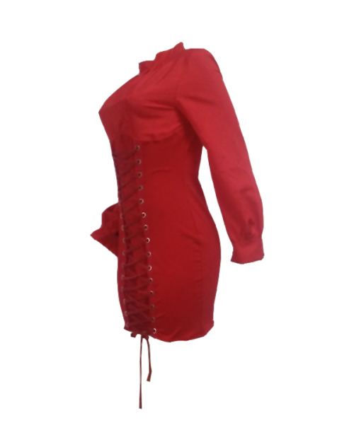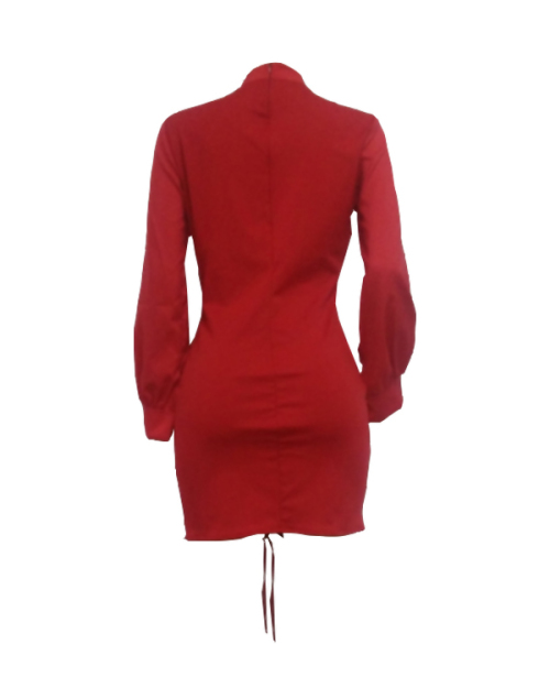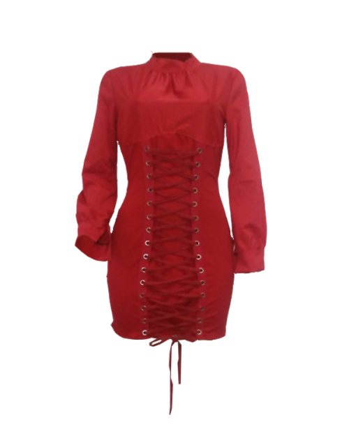 Trendy Round Neck Lace-up Wine Red Polyester Sheath Mini Dress