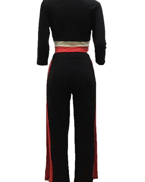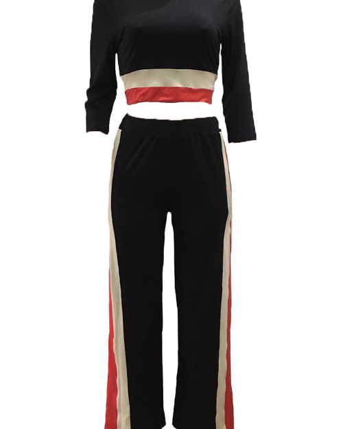 Trendy Round Neck Patchwork Black Milk Fiber Two-piece Pants Set