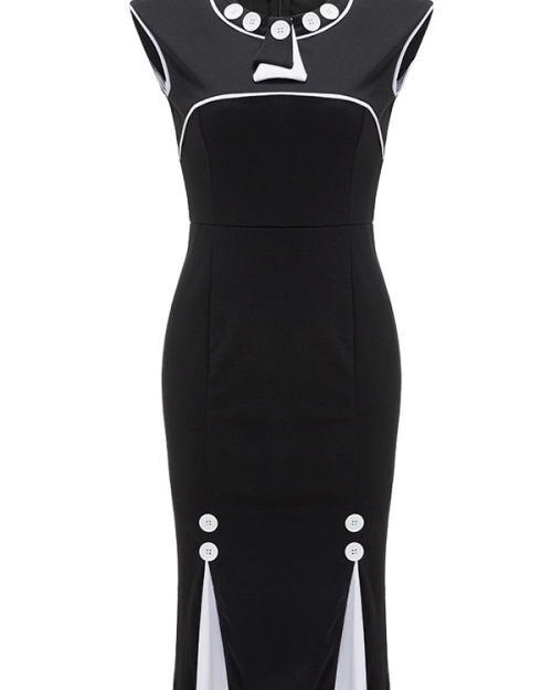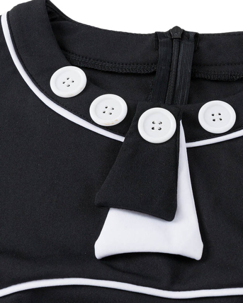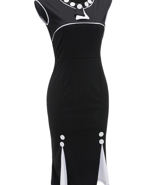 Trendy Round Neck Zipper Design Black Healthy Fabric Sheath Knee Length Dress