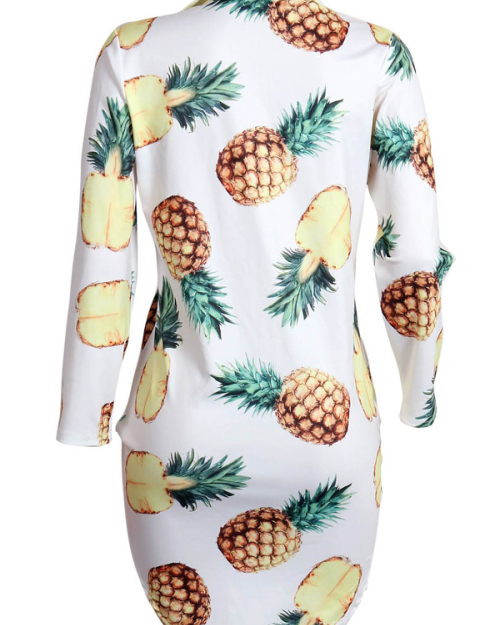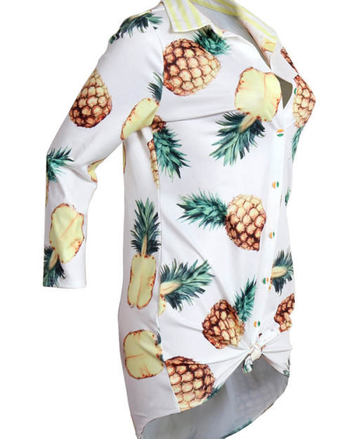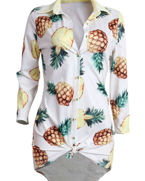Trendy Turndown Collar Printed White Healthy Fabric Mini Dress(Without Belt)