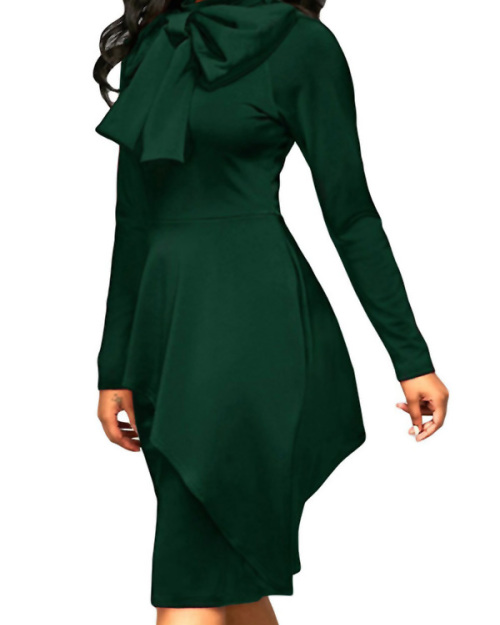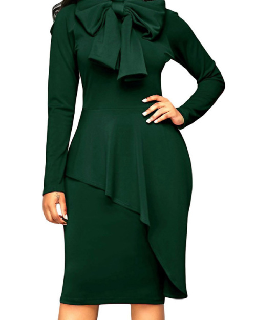 Trendy Turtleneck Bow-Tie Design Green Polyester Sheath Knee Length Dress Trendy Turtleneck Bow-Tie Design Green Polyester Sheath Knee Length Dress Trendy Turtleneck Bow-Tie Design Green Polyester Sheath Knee Length Dress