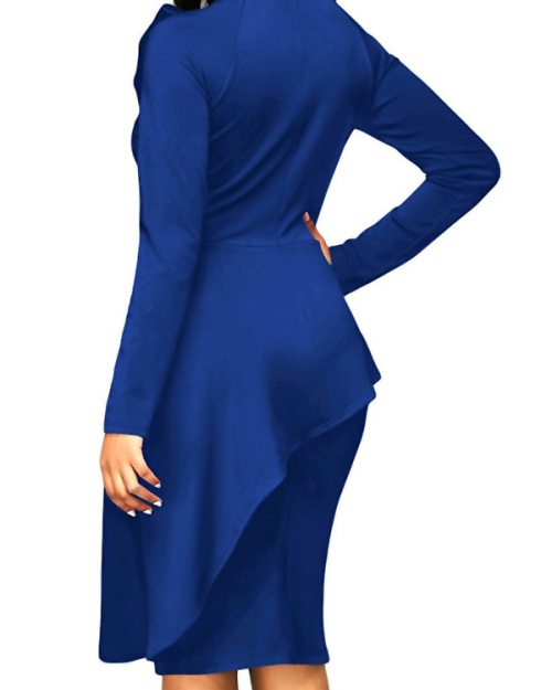 Trendy Turtleneck Bow-Tie Design Navy Blue Polyester Sheath Knee Length Dress