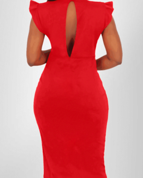 Trendy Turtleneck Tank Sleeveless Falbala Design Red Polyester Sheath Knee Length Dress