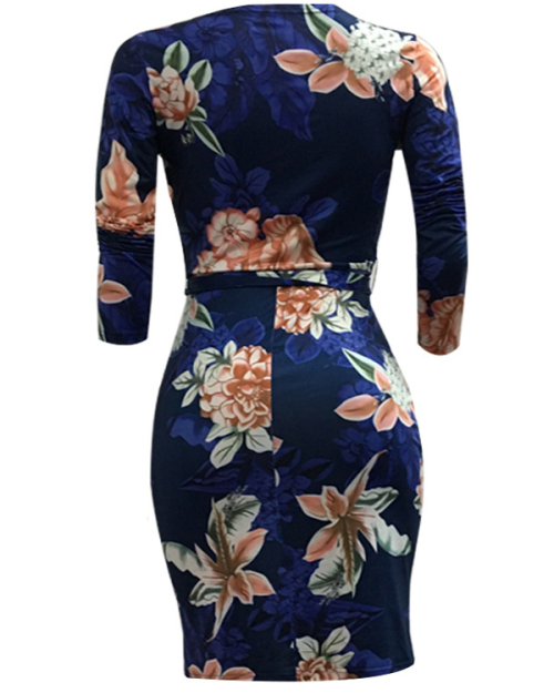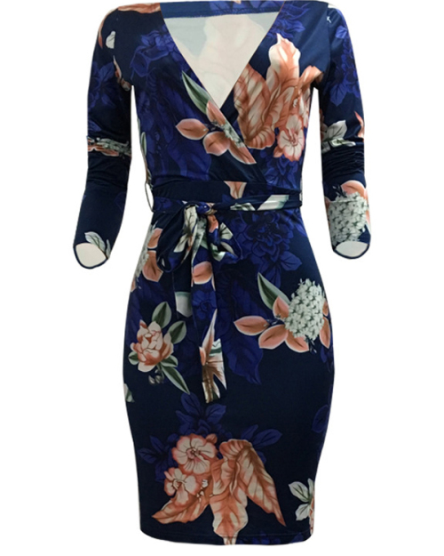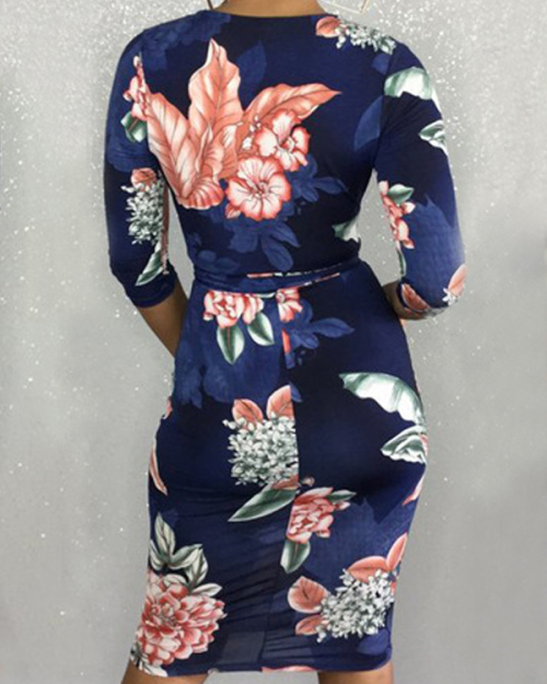 Trendy V Neck Floral Print Polyester Sheath Knee Length Dress