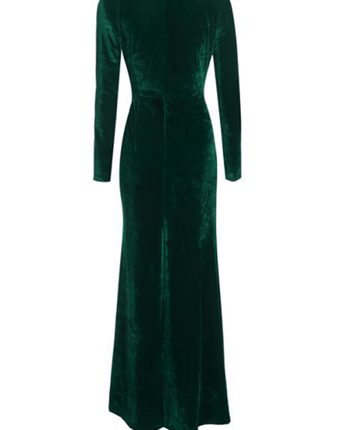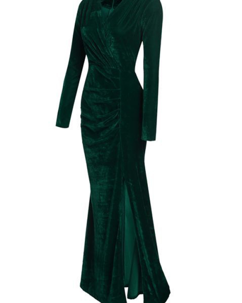 Trendy V Neck Velvet Fold Design Green Velvet Mermaid Ankle Length Dress