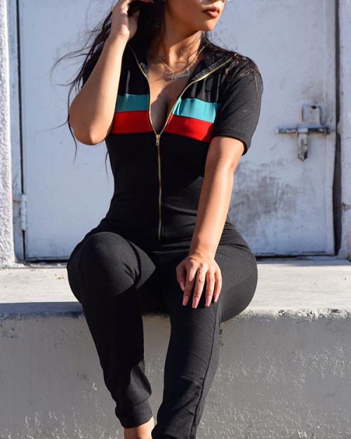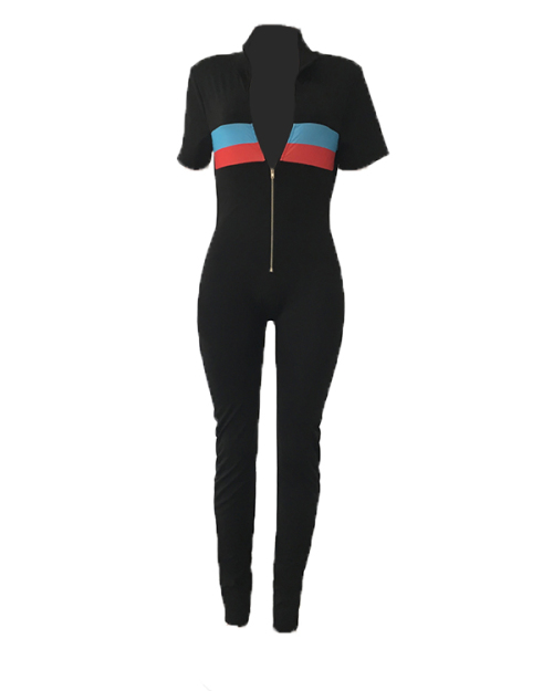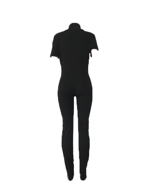 Trendy Zipper Design Black Blending One-piece Jumpsuits