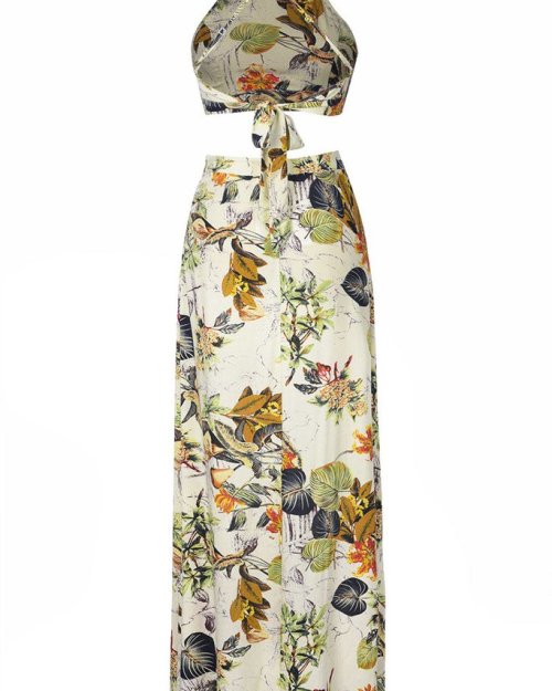 Blending Skirt Print O neck Sleeveless Bohemian Two Pieces