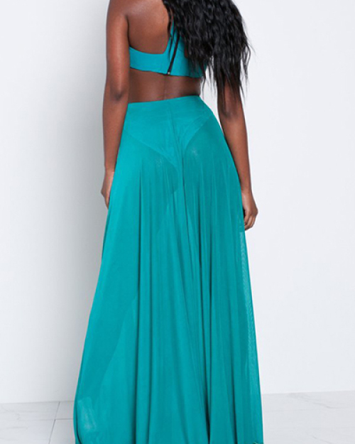 Blue Qmilch Skirt Solid Bateau Neck Short Sleeve Sexy Two Pieces