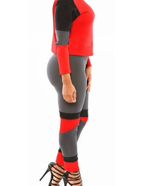Casual O Neck Long Sleeves Color-block Splicing Polyester Two-piece Pants Set
