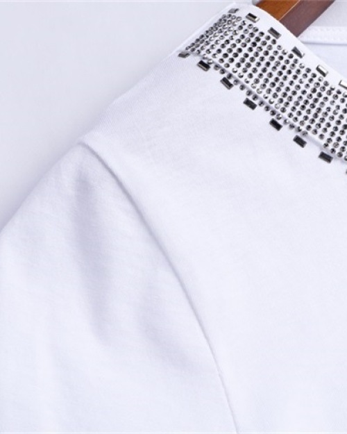 new cotton tee pink one word collar elastic sleeve t-shirt #94938