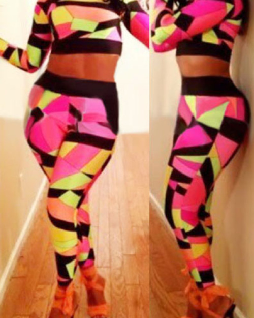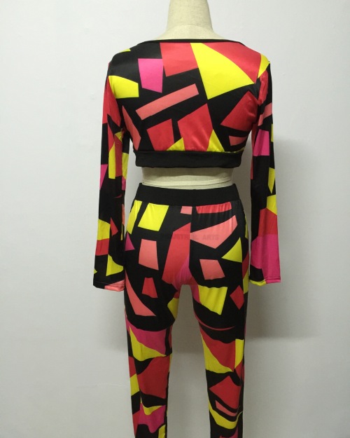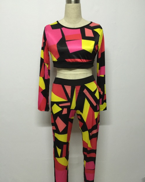 Fashion O Neck Long Sleeves Patchwork Polyester Two-piece Pants Set