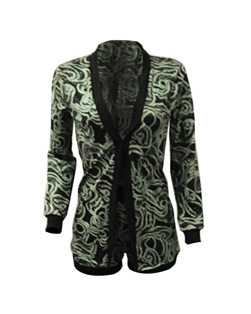 Fashion V Neck Long Sleeves Printed Green Polyester Two-piece Shorts Set