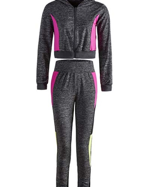 Leisure Long Sleeves Color-block Patchwork Cotton Two-piece Pants Set
